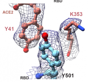 A group from University of British Columbia, etc. has reported studies on molecular structures at the binding site of the SARS-CoV-2 spike protein of N501Y variant and ACE2 receptor with using a cryo-electron microscopy.