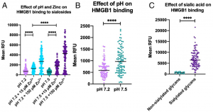 A group from UC San Diego has reported that blood pH, serum Zn concentration, existence of plasma sialoglycoproteins are deeply related to binding formation of High mobility group box 1(HMGB1), which is released from cells into blood with developing sepsis, to leukocyte receptors.
